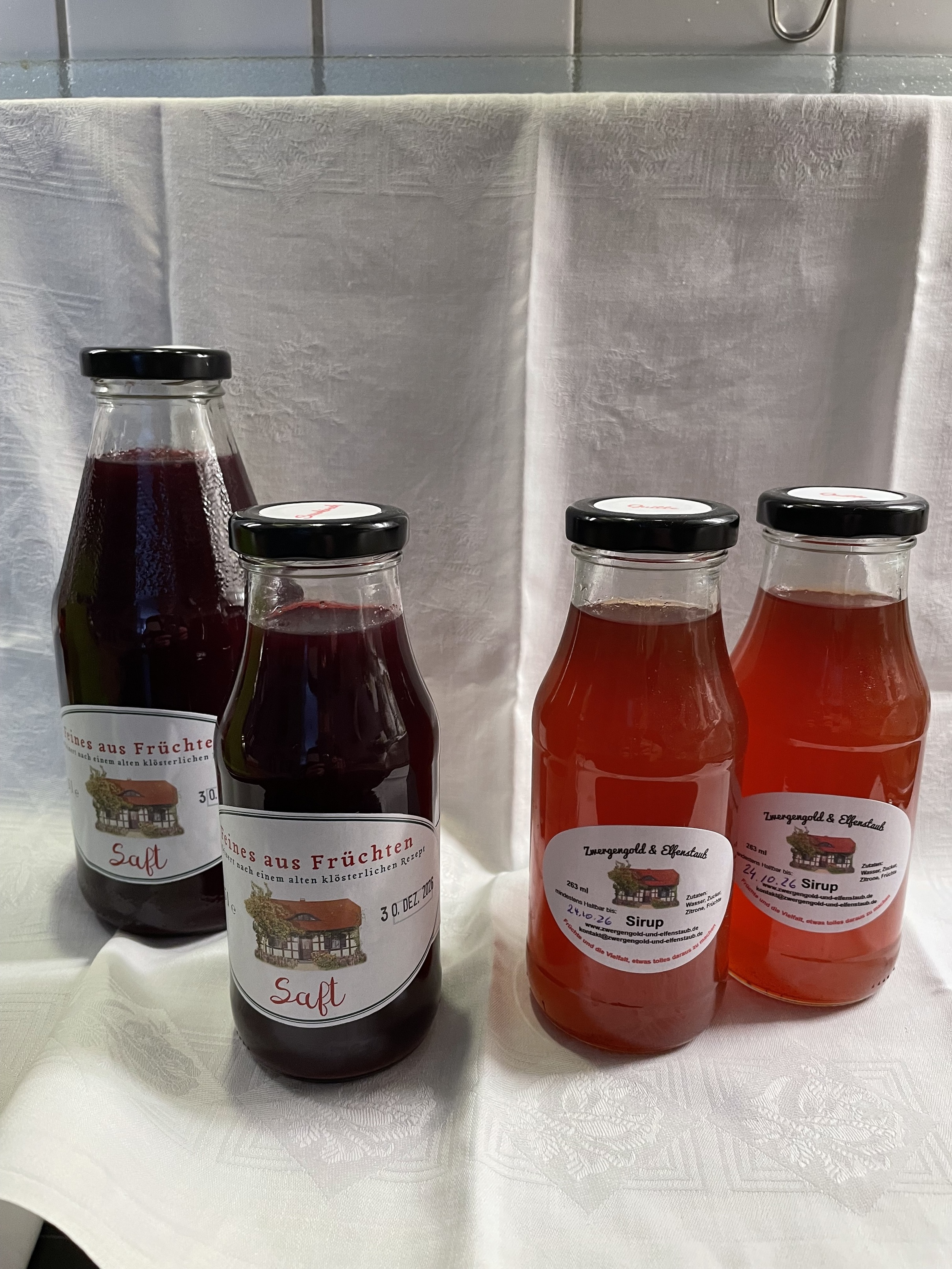 | Klassisch angesetzte Säfte ab 3,50 € / Liköre ab 6,90 € / Sirup ab 4,10 € | |